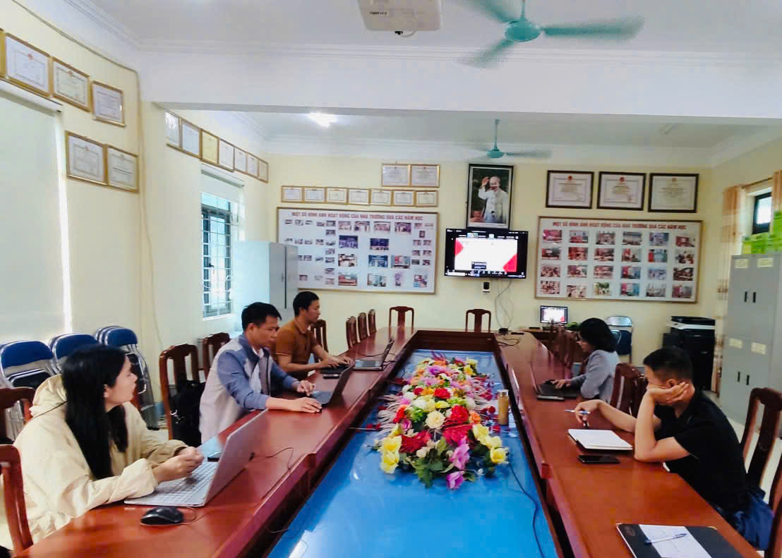 Thực hiện Quyết định số 2095/QĐ-UBND ngày 19/11/2024 của UBND tỉnh Điện Biên về việc phê duyệt Dự án “Tăng cường tiếp cận công nghệ giáo dục bình đẳng và hòa nhập cho trẻ em Việt Nam tại tỉnh Điện Biên” do Tổ chức Save the Children International (SCI) - Văn phòng đại diện tại Việt Nam (Tổ chức Cứu trợ Trẻ em) tài trợ; căn cứ Văn bản thỏa thuận bổ sung số 18975 ngày 03/12/2024 giữa Sở Giáo dục và Đào tạo tỉnh Điện Biên và Tổ chức Cứu trợ Trẻ em về việc triển khai dự án; đồng thời tiếp theo Công văn số 2783/SGDĐT-GDMNTH ngày 16/9/2025 của Sở Giáo dục và Đào tạo về việc triển khai ứng dụng “Vui đọc cùng em” tại các cơ sở giáo dục có học sinh tiểu học trên địa bàn tỉnh từ năm học 2025 - 2026, ngày 22/03/2026, nhà trường đã tổ chức buổi tập huấn hướng dẫn giáo viên sử dụng Sổ tay lồng ghép ứng dụng “Vui đọc cùng em” trong dạy học.