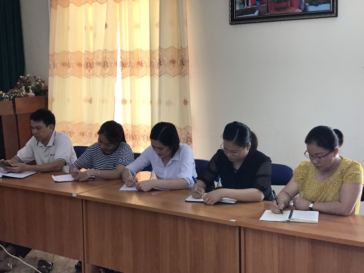 Thực hiện Chỉ thị 05-CT/TW ngày 15/5/2016 của Bộ Chính trị về “Đẩy mạnh học tập và làm theo tư tưởng, đạo đức, phong cách Hồ Chí Minh” năm 2020; Hướng dẫn số 37/HD-BTG ngày 21/01/2020 của Ban tuyên giáo tổng liên đoàn lao động Việt Nam; Hướng dẫn số 26/HD-CĐVC ngày 05/02/2020 về việc hướng dẫn học tập chuyên đề năm 2020 “Tăng cường khối đại đoàn kết toàn dân tộc, xây dựng Đảng và hệ thống chính trị trong sạch, vững mạnh theo tư tưởng, đạo đức, phong cách Hồ Chí Minh”, Đồng chí Nguyễn Đức Thành Bí thư Chi bộ Hiệu trưởng trường Tiểu học Hoàng Văn Nô hướng dẫn, triển khai đến các đồng chí cán bộ giáo viên công nhân viên trong nhà trường học tập và thực hiện chuyên đề năm 2020: Một số hình ảnh trong buổi học tậpĐ/c: BTCB trường Tiểu học Hoàng Văn Nô hướng dẫn và triển khai học tập chỉ thị 05 của TW CBGV trong nhà trường tham gia học tập chỉ thị 05CBGV- CNV tham gia học tập chỉ thị 05
