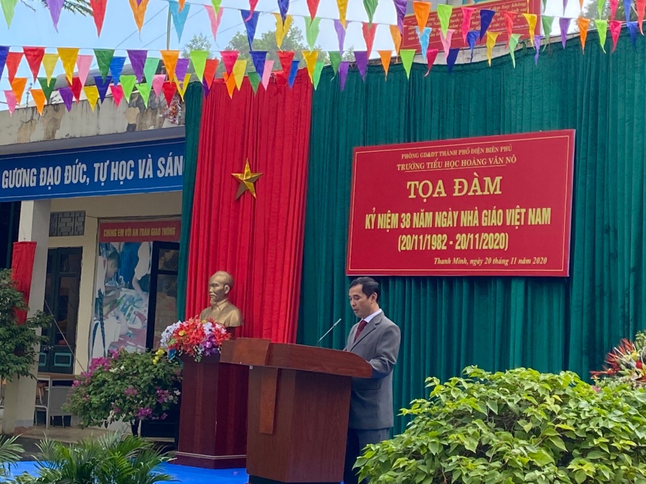 Trong buổi lễ trọng thể này“Tôn sư trọng đạo” là truyền thống sáng ngời và là đạo lý tốt đẹp của dân tộc ta. Hàng năm cứ đến ngày 20/11 các thế hệ nhà giáo lại nhận được rất nhiều sự quan tâm của Đảng, nhà nước, các cấp chính quyền và toàn xã hội. Đồng chí Lường Văn Hùng phó bí thư Đảng ủy – Chủ tịch xã Thanh Minh lên phát biểu động viên thầy cô giáo nhà trường mong các thầy cô khắc phục mọi khó khăn hoàn thành nhiệm vụ năm học 2020-2021.