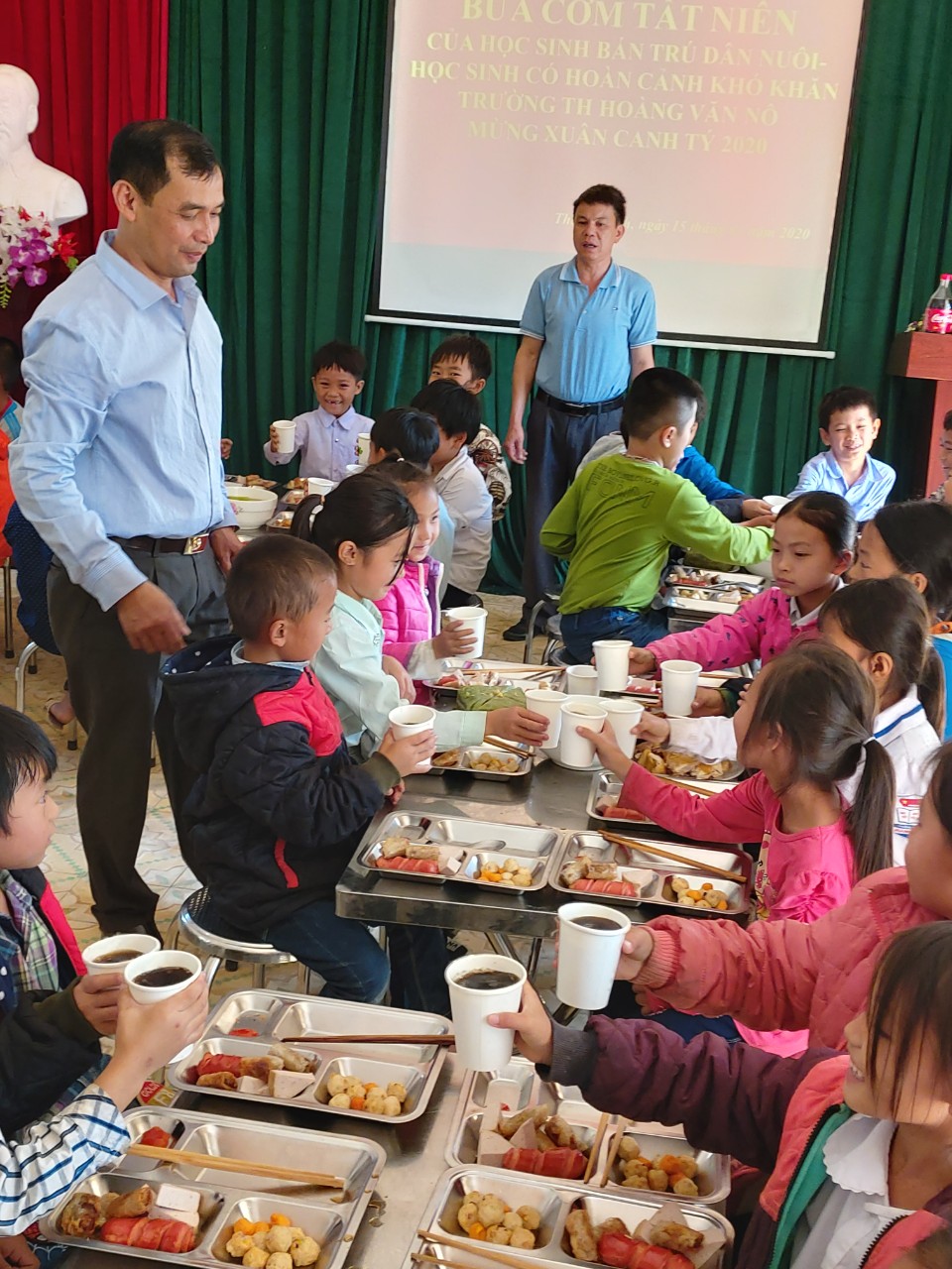 Bữa cơm Tất niên của học sinh bán trú dân nuôi trường tôi. Nhà trường xin cảm ơn MTTQTPĐBP, CT bất động sản Hoàng Huy, bạn Long CT tư vấn Phương Nguyên đã tài trợ cho nhà trường tổ chức bữa cơm Tất niên. Chúc các em hs sang năm mới mạnh khỏe, chăm ngoan học giỏi.